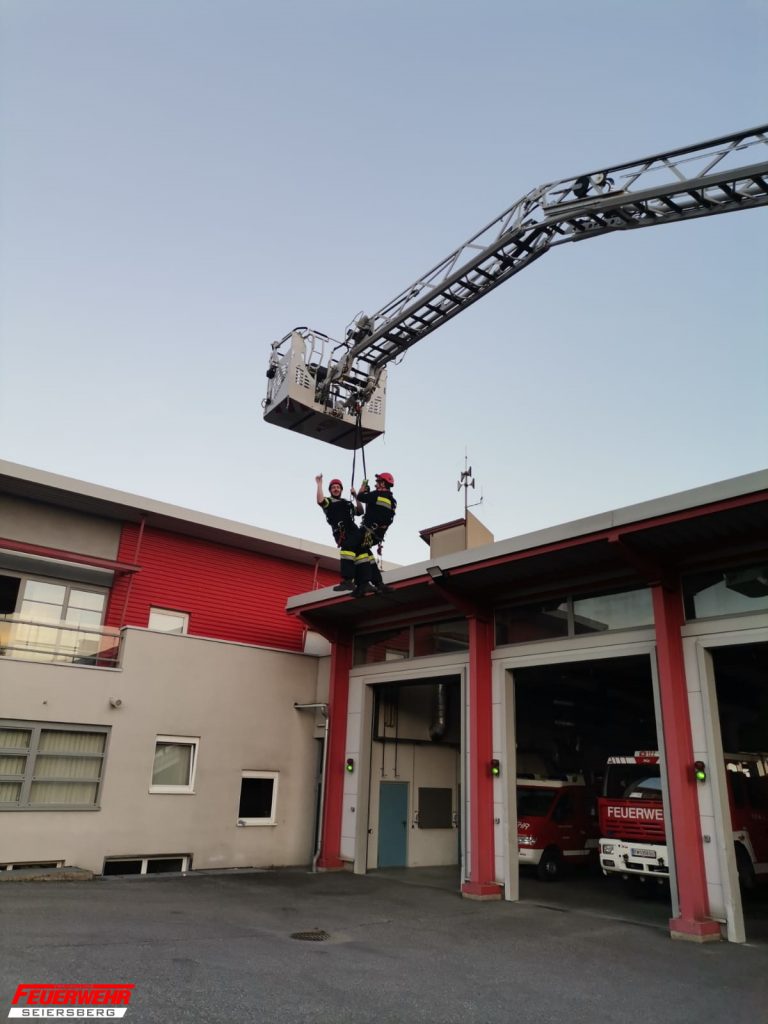 „Sicheres Arbeiten mit der Drehleiter“ beübt. ,