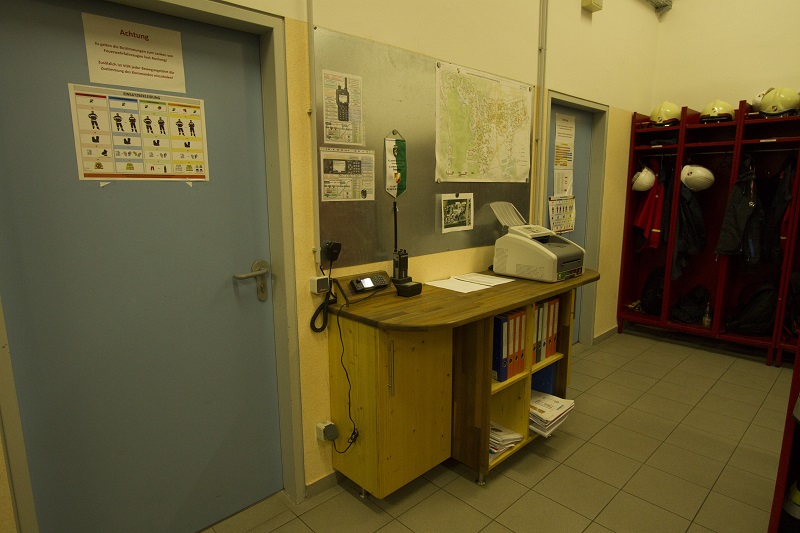 Im Erdgeschoß, die Kommandozentrale, 2 Büros, die Einsatz-Umkleide, der Duschraum und die Waschküche.